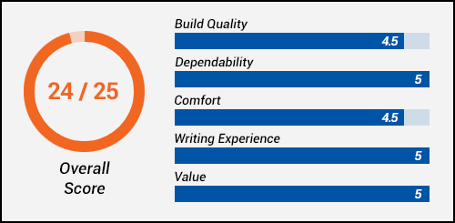 Kind of hard to argue with the value of this pen. I spent just over $7 on it (including shipping). In return, I got a nice, professional-looking pen that puts down a fine and consistent line, and it does so with no skips, hard starts, or other complaints. It’s a great pen for taking notes, and it looks a lot more expensive than it actually is.